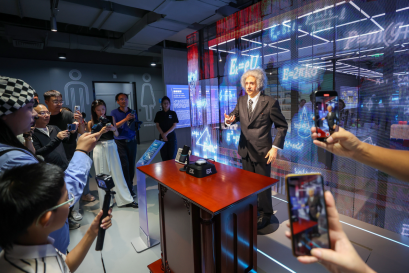人形機器人“愛因斯坦”吸引參觀者。