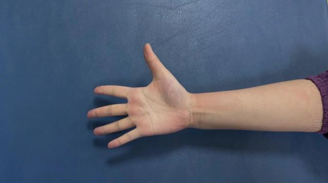 ②拇指屈曲時,會有彈響或活動受限的感覺。嚴重的患者無法完全伸直或屈曲拇指,拇指會呈現(xiàn)固定的屈曲畸形。