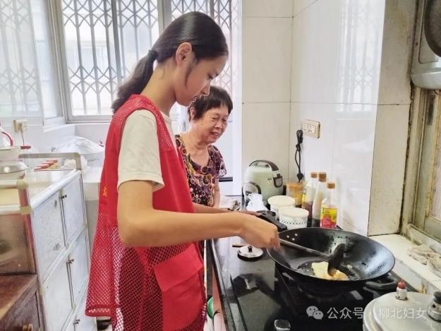 隨后,孩子們在志愿者的陪伴下走進了轄區(qū)老人的家中。他們洗碗、擇菜、整理雜物、淘米炒菜……小小的身影在廚房中忙碌地穿梭。香噴噴的飯菜端上了桌,祖孫般的溫情在歡聲笑語中彌漫開來。看著孩子們忙碌的身影,老人們的臉上洋溢著欣慰的笑容。這樣的互動不僅給老人送去了溫暖,更讓孩子們在實踐中體會到了孝老敬親的傳統(tǒng)美德,生動地展現(xiàn)了“一老一小”相互陪伴的社區(qū)溫情。