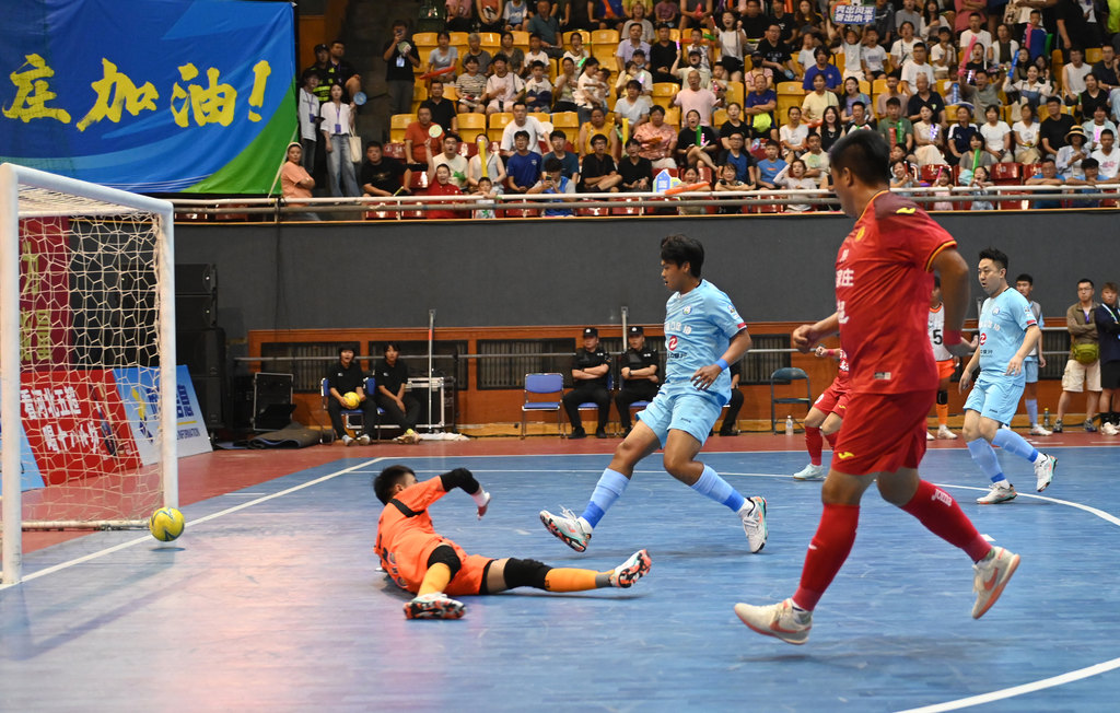 石家莊隊與張家口隊在2025年河北省五人制足球超級聯(lián)賽揭幕戰(zhàn)上。 河北日報記者 王偉宏 攝