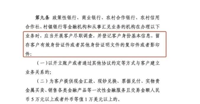 此外,為客戶提供現(xiàn)金匯款、實物貴金屬買賣等業(yè)務,一次性交易金額超過5萬元的,金融機構仍需開展盡職調(diào)查,并登記客戶身份基本信息,留存客戶有效身份證件或者其他身份證明文件的復印件或者影印件。