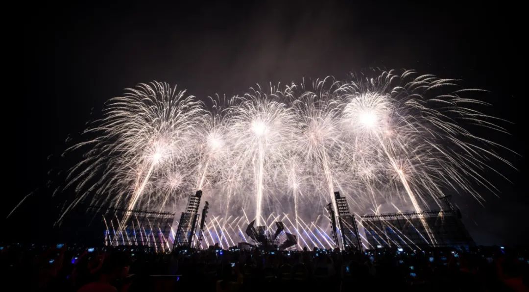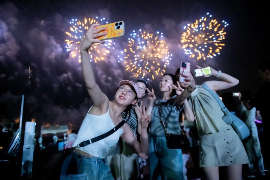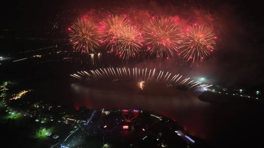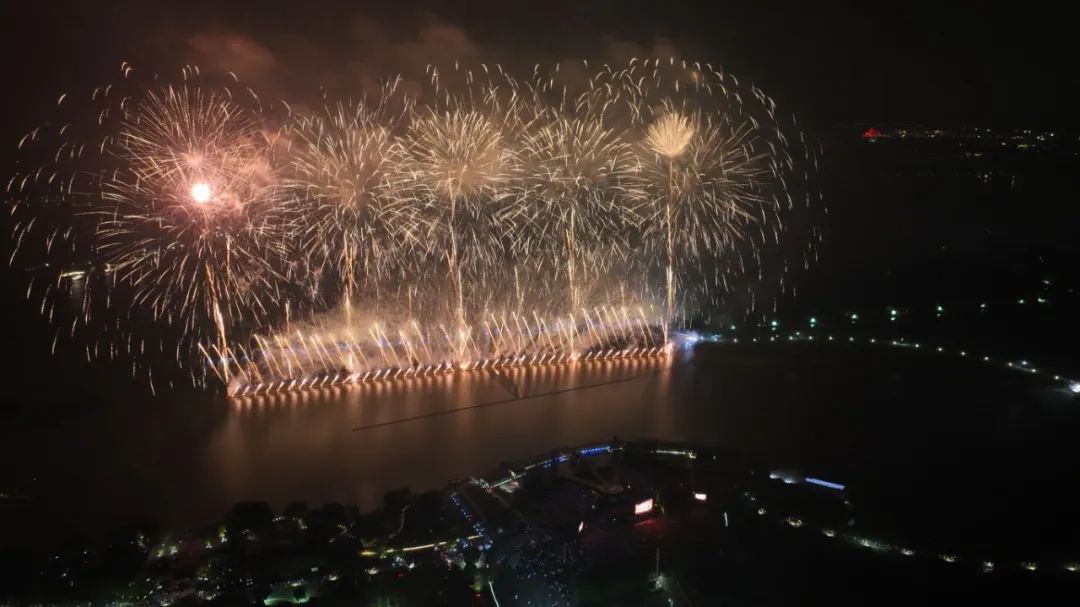 本次焰火秀由亞太煙花團(tuán)隊(duì)打造,屬于“全球首發(fā)”級(jí)別。焰火與無(wú)人機(jī)光影表演首次深度融合,立體化展現(xiàn)“水幕+天幕”雙重舞臺(tái)。音樂(lè)與焰火的每一次配合都經(jīng)過(guò)精心編排,情緒層層遞進(jìn)、張力十足。