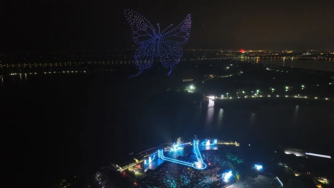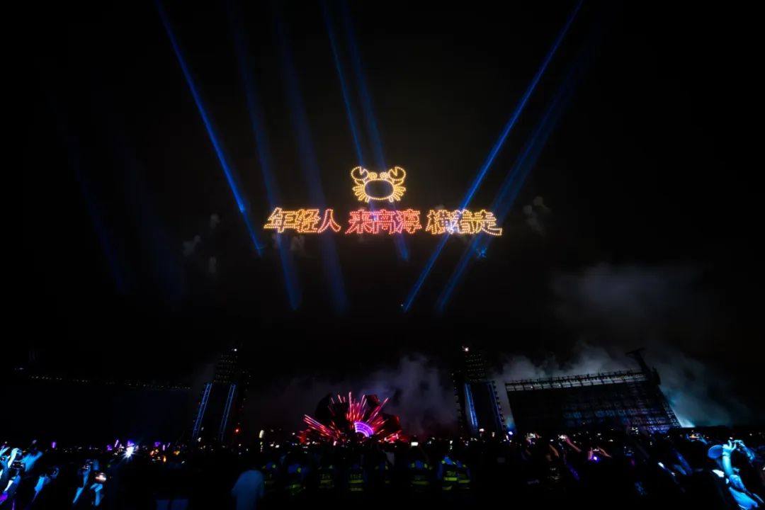當(dāng)無(wú)人機(jī)排列出“年輕人 來(lái)高淳 橫著走”的創(chuàng)意文案時(shí),瞬間引發(fā)全場(chǎng)樂(lè)迷的尖叫與共鳴!