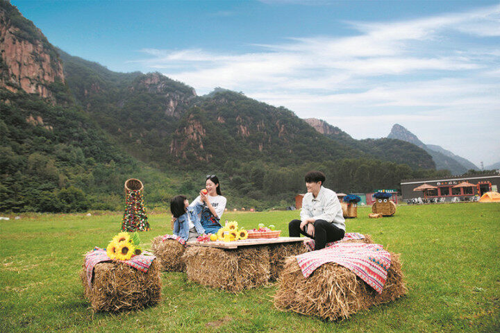 在秦皇島市祖山腳下,天女小鎮(zhèn)山居樂(lè)園的湖畔草地間,幾頂純白帳篷點(diǎn)綴在淡綠草叢中。孩子們?cè)诓莸厣媳M情追逐嬉戲,一會(huì)兒蹲下拾起野花,一會(huì)兒又試探著撥弄湖水。帳篷邊,孩子們的歡聲笑語(yǔ)與家長(zhǎng)們的談笑聲相互交織。