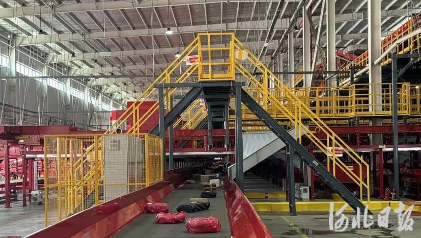 7月3日,在河北潤沃智慧物流產(chǎn)業(yè)園極兔速遞分撥中心,自動化分揀設(shè)備正在工作。 河北日報記者呂若汐攝