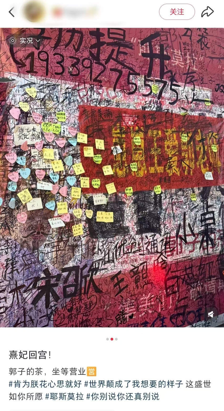 據紅餐網了解,該門店還在圍擋期間,網紅郭老師就現身店外為即將開業(yè)的新店“站臺”,使得門店未開先火。期間,不少網友發(fā)帖稱,店外的留言板上滿是專門到店打卡的網友們的手寫留言,門店被網友戲稱為“滄州新晉5A級景區(qū)”。僅幾天時間,“郭子的茶”在大眾點評的評論數就一度高達近兩千。