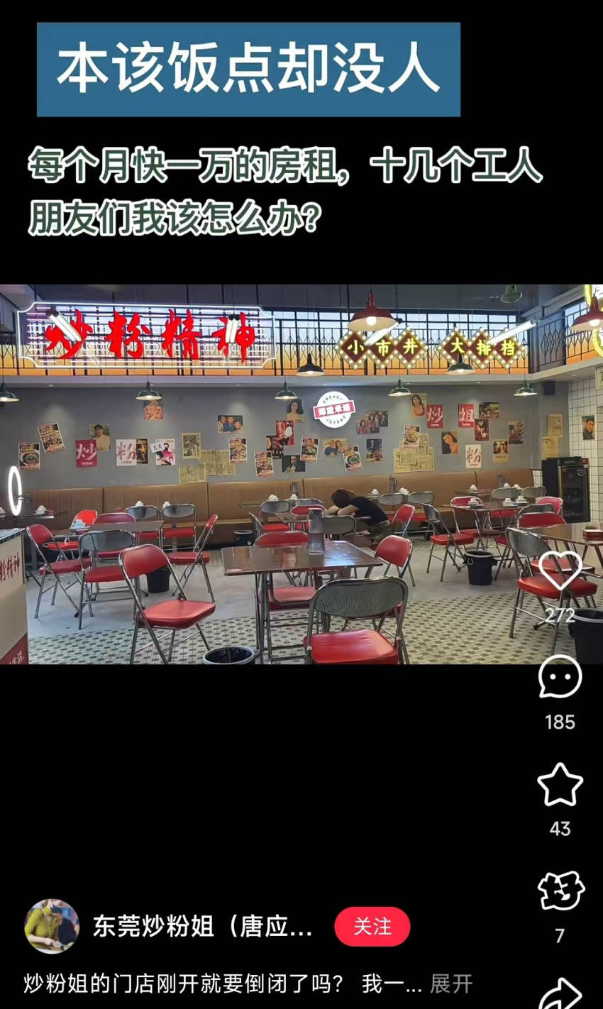 - 同樣在3月,靠擺攤時戴口罩展現精致外表走紅的炒粉姐,將攤位升級成門店“唐應炒粉姐”后,也悄然閉店;