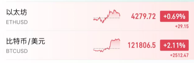 比特幣一度上漲3.2%,突破12.2萬美元,距離7月中旬創(chuàng)下的歷史高點不遠。周末,以太坊大漲至4300美元上方,創(chuàng)下自2021年12月以來的最高水平。