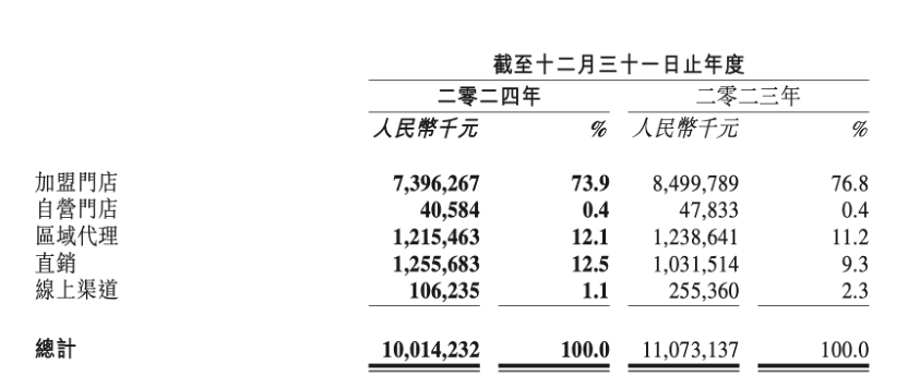 門店規(guī)模縮小直接影響百果園收入。2024年,加盟店收入73.96億元,同比下滑12.98%。