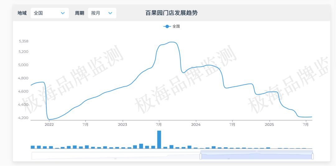 2025年,百果園關(guān)店潮仍在持續(xù)。繼海品牌監(jiān)測數(shù)據(jù)顯示,截至8月11日,近90天新開22家,關(guān)閉122家;1 - 8月11日,門店總數(shù)減少超350家。