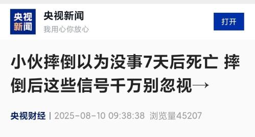 原標(biāo)題:《22歲小伙摔倒以為沒事,7天后死亡!警惕這些信號》