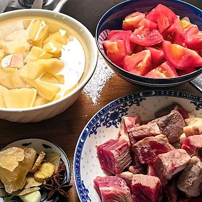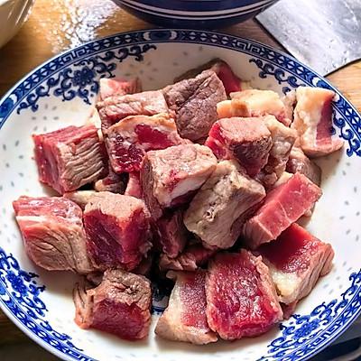 1、牛腩焯水后切塊,別切太小,牛肉縮水厲害。