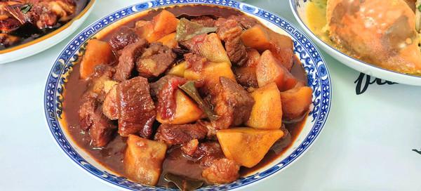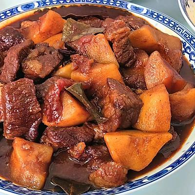 11、出鍋啦,土豆綿密,牛腩酥爛,帶著茄汁味兒,非常好吃,用來拌飯也很不錯(cuò)。