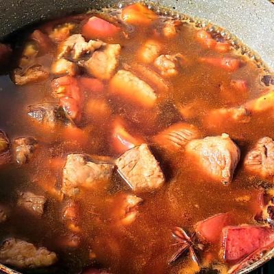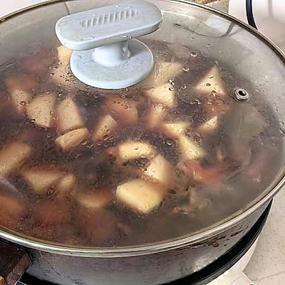 10、大火煮開后,小火悶燉兩小時(shí),接著放入土豆,繼續(xù)燉一小時(shí)。