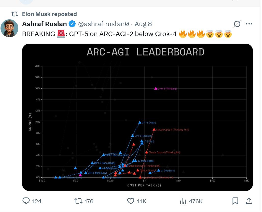 OpenAI的老冤家馬斯克率先唱反調(diào),直接拿出成績(jī)單表示GPT - 5不如他家的Grok 4。