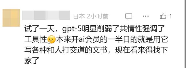 普通網(wǎng)友的吐槽聲也增多。大家感覺(jué)GPT - 5“智商”提高了,但“情商”下降。很多人反映用它寫文案、話術(shù),文字生硬、機(jī)械,缺乏靈動(dòng)和自然。有網(wǎng)友調(diào)侃:“情緒和邏輯就像蹺蹺板,你把邏輯這頭死死按住,情感那頭可不就彈飛了嗎?”不過(guò),有網(wǎng)友發(fā)現(xiàn)設(shè)置里可切換回過(guò)去的模型。