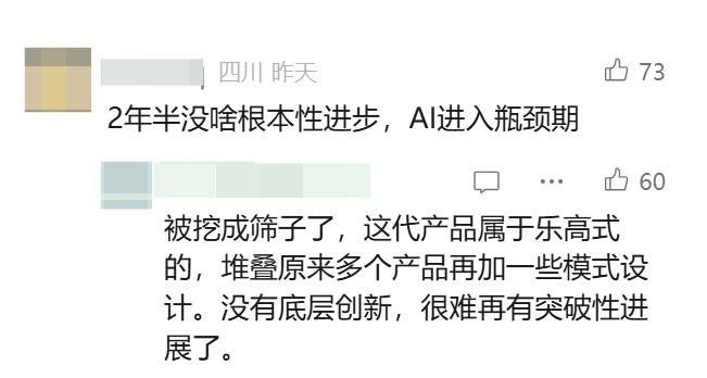 然而,開發(fā)者狂歡的同時(shí),另一邊情況卻不同。資本市場(chǎng)率先“用腳投票”,發(fā)布當(dāng)天概念股普遍回調(diào),顯然未被這個(gè)“博士生”完全打動(dòng)。畢竟大家等了兩年半,期待的是一場(chǎng)革命性升級(jí),結(jié)果只是常規(guī)升級(jí),失望在所難免。而且如今AI競(jìng)賽激烈,各路技術(shù)差距縮小,OpenAI想靠常規(guī)操作拉開差距已很困難。