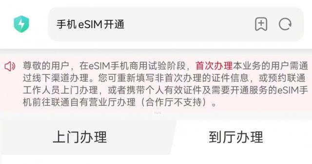 其次是辦理流程問題。國內(nèi)目前大概率還是要跑營業(yè)廳,比如中國聯(lián)通 eSIM 手機業(yè)務要求首次辦理用戶必須“上門辦理”或“到廳辦理”,線下操作和實體 SIM 卡辦理沒本質區(qū)別。