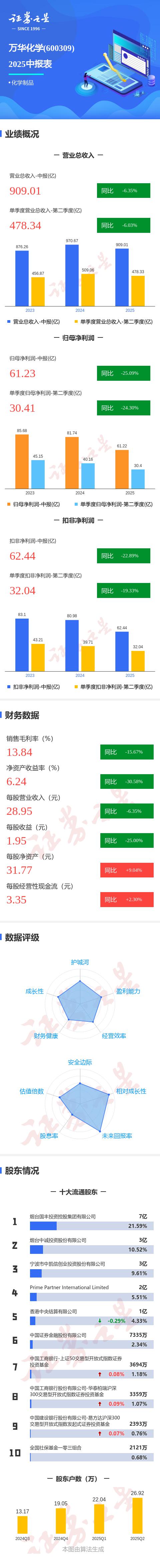 萬(wàn)華化學(xué)中報(bào)圖解:二季度單季凈利潤(rùn)同比降24.30%