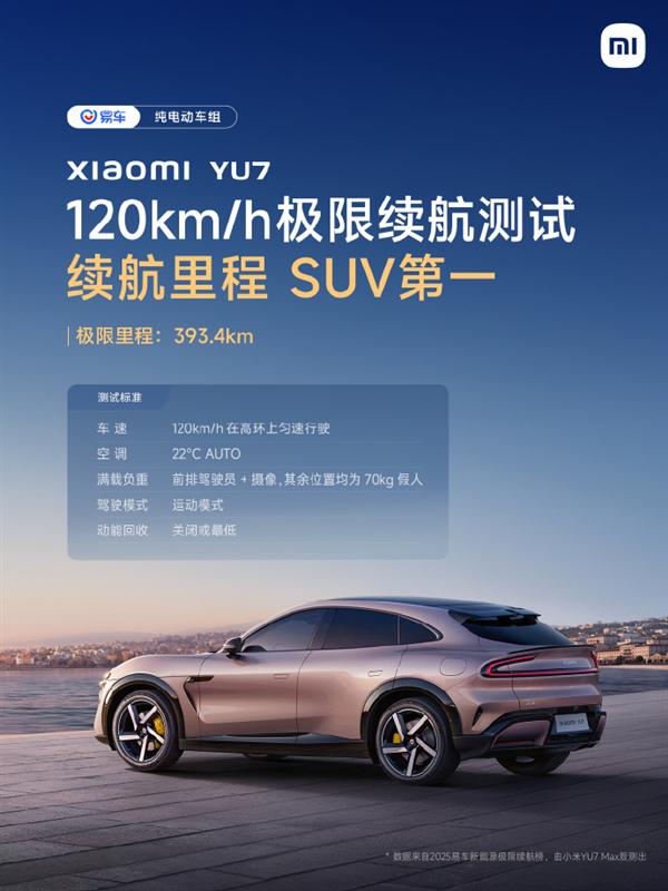 純電車極限續(xù)航測(cè)試成績(jī)公布:小米SU7奪冠、小米YU7 SUV拔頭籌