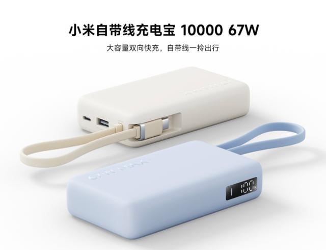 此外,小米前兩天還更新了兩款充電寶。一款是 10000mAh 自帶線充電寶,有 1A1C 接口,支持 3 口同時(shí)輸出。