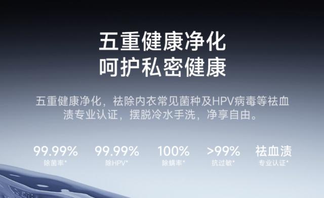 而且,這款迷你洗烘一體機(jī)還有許多針對(duì)健康設(shè)計(jì)的功能。比如蒸汽除菌、95 ℃ 高溫煮洗、蒸汽潔桶等,官方稱能祛除常見(jiàn)菌種和 HPV 病毒,還獲得了祛血漬專業(yè)認(rèn)證。