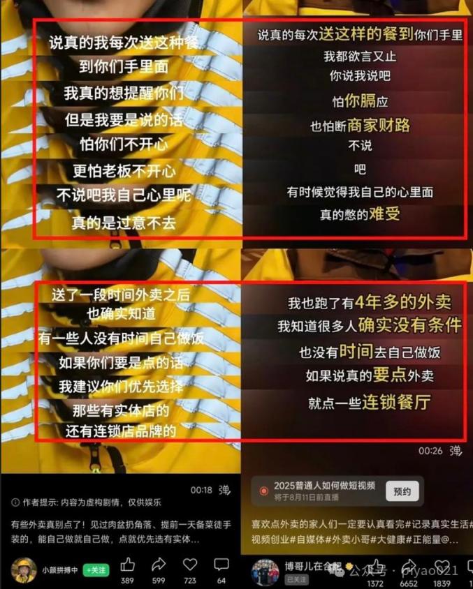 近期,一批以“外賣騎手”為主角的謠言被曝光。社交平臺上“博哥”“蘇星顏”“林晚尚”等賬號,通過虛構(gòu)悲慘故事、食品安全問題等謠言,誤導(dǎo)公眾,擾亂配送秩序。