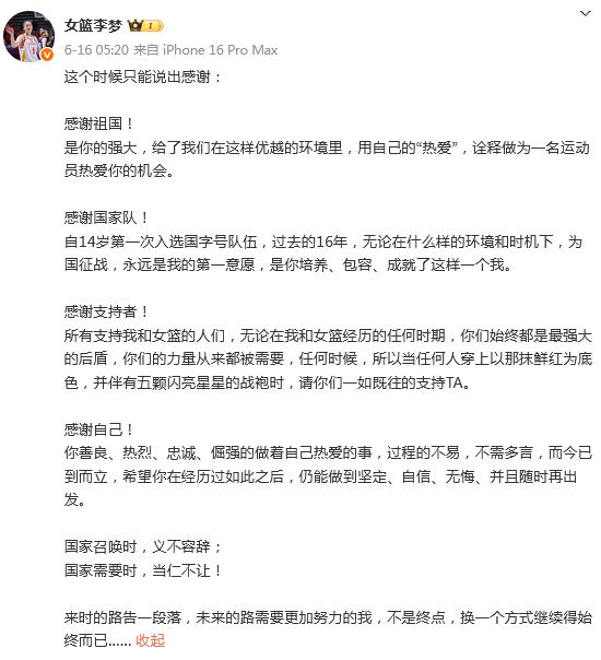 李夢的回應(yīng)耐人尋味,她更新社媒表達(dá)了多個感謝,還提到國家召喚時義不容辭,國家需要時當(dāng)仁不讓。雖未正面回應(yīng)缺席女籃亞洲杯一事,但從字面意思不難聯(lián)想到,無緣該賽事或許不全是傷病原因。