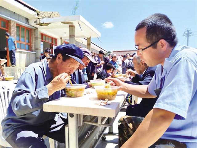 村民吃著熱騰騰的牛肉面