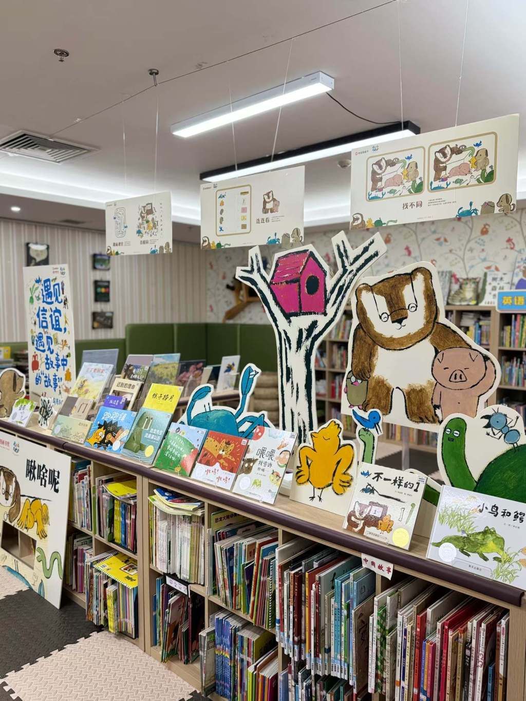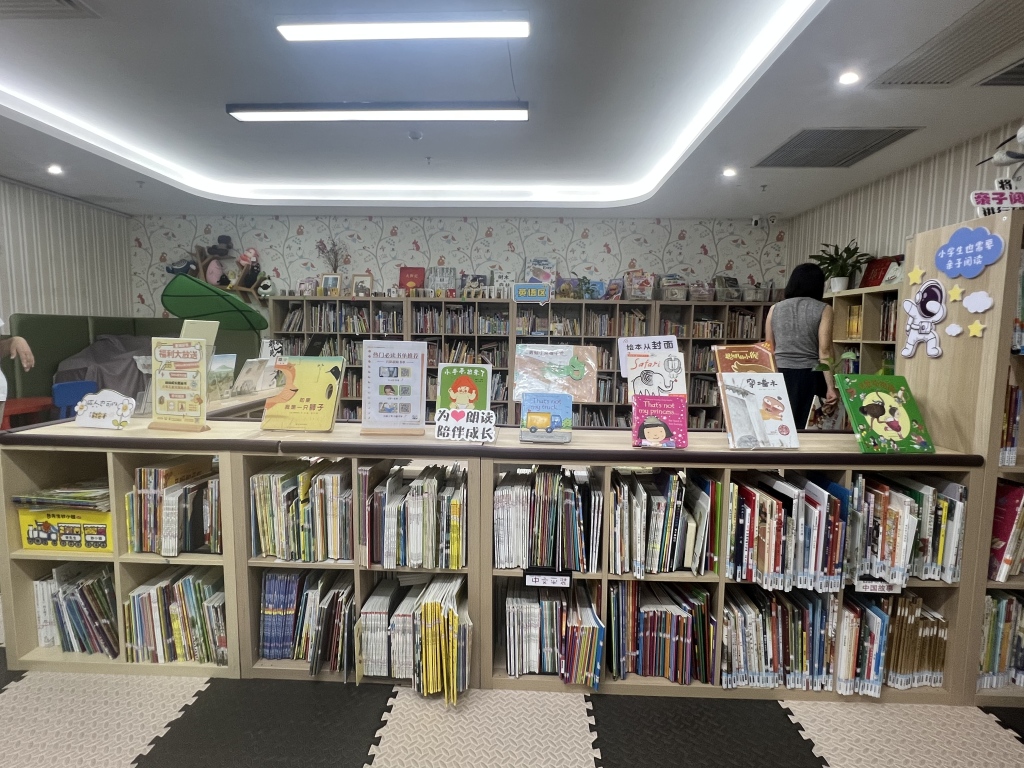走進(jìn)悅讀館,柔和的色調(diào)、被書籍包圍的環(huán)境,讓人仿佛置身家中,內(nèi)心瞬間放松。最引人注目的是按年齡分層的書架:1 - 3歲寶寶的繪本架高度不超過1米,采用圓角設(shè)計(jì)的卡紙書,不用擔(dān)心被寶寶撕咬;3 - 6歲區(qū)域擺滿了互動(dòng)性強(qiáng)的翻翻書、洞洞書;小學(xué)生專區(qū)則有按作者分類的經(jīng)典圖畫書,貼著作者照片的標(biāo)簽十分醒目。