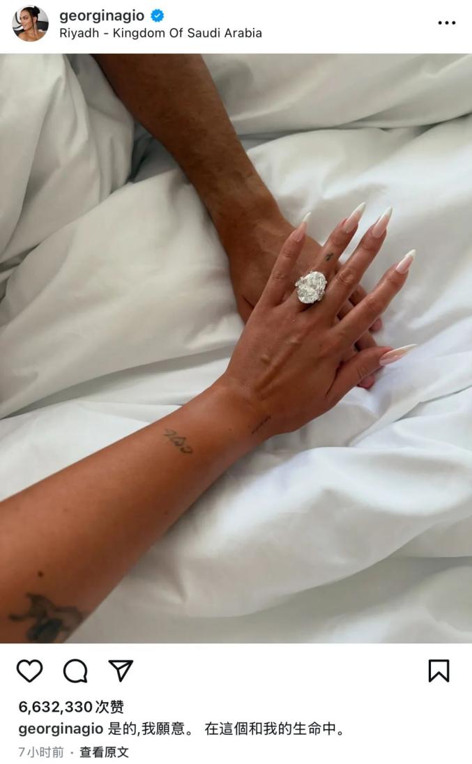 C羅求婚喬治娜成功,喬治娜曬鉆戒回應(yīng)