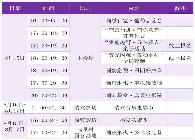 本次葡萄采摘節(jié)以“葡富前進(jìn),萄你歡喜——葡萄‘奇遇’夜”為主題,誠摯邀請(qǐng)您暫別都市的喧囂,步入一場融合了葡萄品鑒、展銷市集、全民運(yùn)動(dòng)、煙火夜集市的沉浸式夏夜盛宴。
