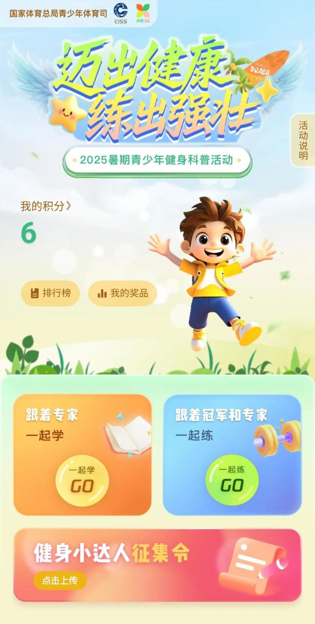 8月8日至31日,打開央視少兒客戶端,或掃描下方二維碼,即可參與活動。這個暑假,讓我們一起在科學運動中收獲健康,在堅持中感受成長——“相約2025暑期健身科普活動,開啟青少年健康之旅”,期待你的加入!