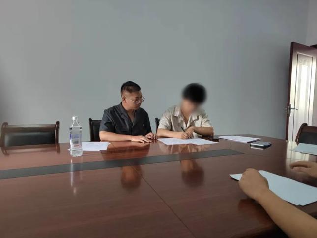 面對(duì)這些難點(diǎn),楊漢東決定采用“法庭 + 派出所”聯(lián)合調(diào)處機(jī)制解決糾紛。首先,調(diào)解員依法從派出所、公司調(diào)取多處監(jiān)控證據(jù),并走訪公司員工,還原了案件事實(shí),解決了姜某對(duì)案件事實(shí)的質(zhì)疑。其次,石花人民法庭、石花鎮(zhèn)派出所和石花某公司三方聯(lián)動(dòng),將姜某和周某喊到調(diào)解室面對(duì)面調(diào)解。公司領(lǐng)導(dǎo)詳細(xì)解釋檢測標(biāo)準(zhǔn)的合理性,消除了姜某對(duì)檢測結(jié)果的疑慮,使其認(rèn)清自身問題。石花派出所工作人員對(duì)雙方進(jìn)行普法教育,明確了雙方的權(quán)利和義務(wù)。最后,調(diào)解員楊漢東站在公正立場對(duì)姜某釋法明理,他說:“你們都是石花人,以后抬頭不見低頭見,為這點(diǎn)小錢鬧到開庭會(huì)加重負(fù)擔(dān)?!苯?jīng)過多方努力,周某和姜某達(dá)成一致,簽訂協(xié)議書并現(xiàn)場履行。