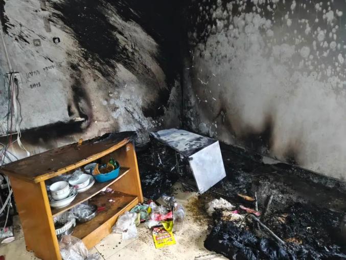 火災撲滅后,元陽縣消防救援大隊火災事故調(diào)查人員對現(xiàn)場進行了仔細勘驗發(fā)現(xiàn),大火是從冰箱處向四周蔓延的。此次火災導致房間東面一角的家電物品全被燒毀,整個房間墻壁也被燒得焦黑。
