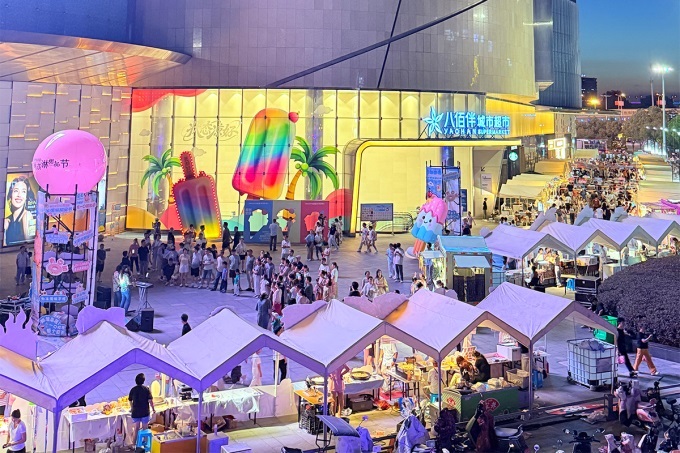 場景煥新不僅提升了用戶體驗(yàn),還推動(dòng)了商業(yè)價(jià)值和社會(huì)價(jià)值的雙重升級(jí)?;顒?dòng)期間,八佰伴在空間場景打造上獨(dú)具匠心,仿佛按下了狂歡的啟動(dòng)鍵。漫展的奇趣、藝術(shù)展的雅致、IP展的吸睛、冰淇淋面包市集的甜香、無人機(jī)秀的璀璨,在各個(gè)角落綻放光彩;三人籃球賽的熱血、音樂節(jié)的躁動(dòng)、街舞派對(duì)的炫酷,點(diǎn)燃了每一位參與者的熱情。