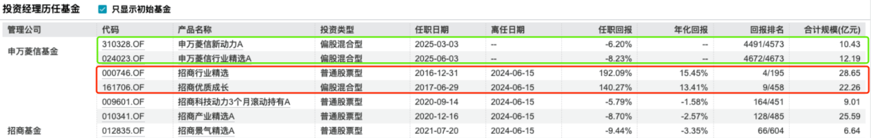爆料人透露,自己購(gòu)買的是今年6月3日首發(fā)的申萬(wàn)菱信行業(yè)精選混合基金,基金經(jīng)理是賈成東。網(wǎng)傳賈成東是今年5月剛被挖到申萬(wàn)菱信的明星基金經(jīng)理,但鳳凰網(wǎng)財(cái)經(jīng)《投資觀察》查詢公開(kāi)信息發(fā)現(xiàn),賈成東早在2024年12月就已入職申萬(wàn)菱信,并擔(dān)任副總經(jīng)理。申萬(wàn)宏源證券的負(fù)責(zé)人和法定代表人確實(shí)叫張劍,不知是否就是爆料人所說(shuō)的集團(tuán)領(lǐng)導(dǎo)。