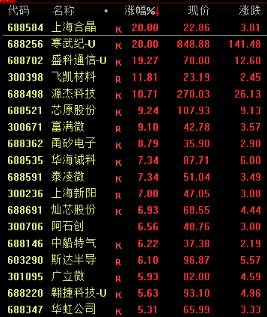 半導(dǎo)體芯片股集體走強,市值3000多億元的寒武紀漲停創(chuàng)新高。市場出現(xiàn)多個公司利好的傳言。