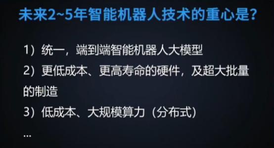 王興興預(yù)判,未來2-5 年,具身智能機(jī)器人的發(fā)展將聚焦三大方向: