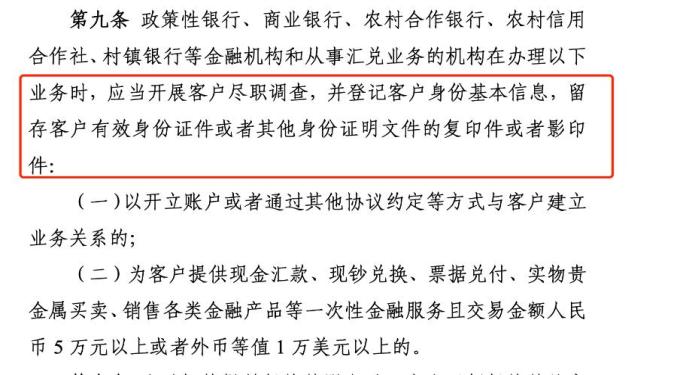 此外,當(dāng)為客戶提供現(xiàn)金匯款、實(shí)物貴金屬買賣等一次性交易金額超過5萬元的業(yè)務(wù)時(shí),金融機(jī)構(gòu)仍需開展盡職調(diào)查,登記客戶身份基本信息,留存客戶有效身份證件或者其他身份證明文件的復(fù)印件或者影印件。
