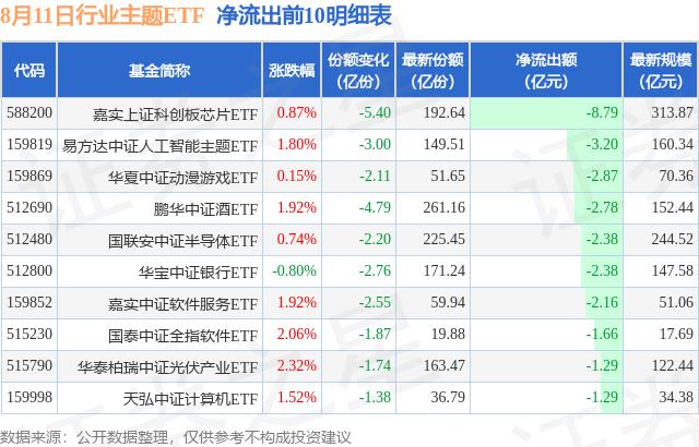 8月11日行業(yè)主題ETF資金凈流出17.79億元