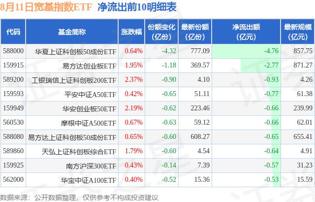 8月11日寬基指數(shù)ETF資金流向情況