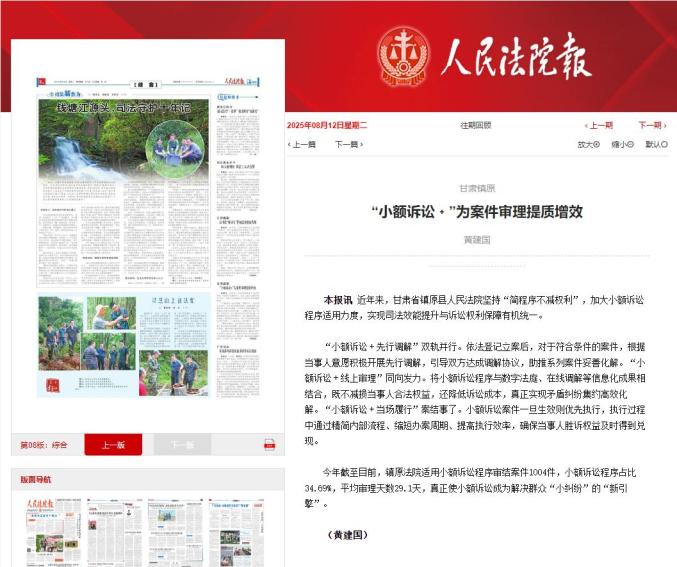 人民法院報:鎮(zhèn)原法院 “小額訴訟﹢”模式提升案件審理質(zhì)效