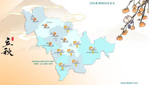 13日夜間到14日白天,全省多云,長春東北部、遼源東部、吉林市東部和南部、通化、白山、延邊州、長白山保護(hù)開發(fā)區(qū)有陣雨或雷陣雨。