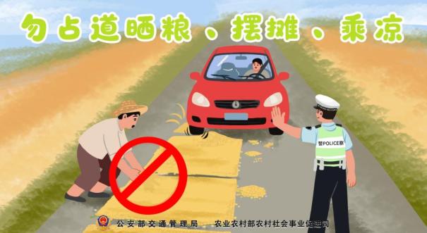 在公路上打場曬糧不僅影響過往車輛正常通行,還給道路交通和自身安全帶來極大的安全隱患。