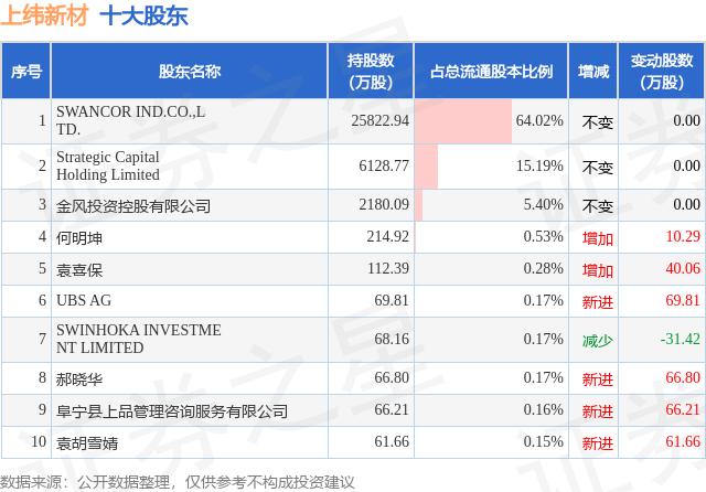 根據(jù)上緯新材2025年中報公布的十大股東詳情如下: