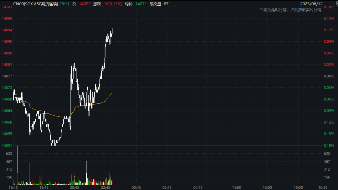此外,富時(shí)中國(guó)A50指數(shù)期貨盤中拉升翻紅。