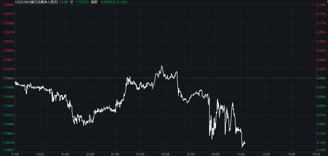 離岸人民幣兌美元也走高,漲超90個(gè)基點(diǎn)。
