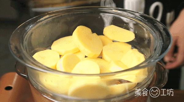 1. 把土豆洗凈去皮,切成塊后放進(jìn)蒸鍋里蒸熟。