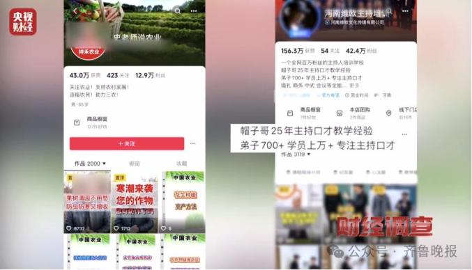 調(diào)查發(fā)現(xiàn),抖音賬號“史老師說農(nóng)業(yè)”出鏡者和“河南維歐主持培訓(xùn)”賬號出鏡者是同一人。在“河南維歐主持培訓(xùn)”賬號里,“說農(nóng)業(yè)的史老師”變成“帽子哥”,是專業(yè)主持培訓(xùn)老師,主頁簡介寫著“帽子哥25年主持口才教學(xué)經(jīng)驗(yàn)、弟子700 + 學(xué)員上萬”。